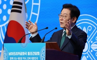 President Lee Jae-myung met with Korean residents in Johannesburg on Saturday and pledged improvements to overseas voting procedures, including the introduction of electronic voting, to ensure that Koreans abroad can exercise their democratic rights without difficulty.