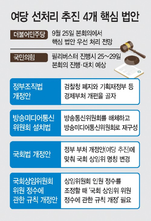 The DPK announced plans to prioritize four key bills, including the government reorganization bill, the Broadcasting and Media Communications Commission Act, amendments to the National Assembly Act, and revisions to the rules on the number of standing committees. The reorganization plan includes controversial measures such as abolishing the prosecution service, splitting the Ministry of Economy and Finance, restructuring the Financial Services Commission and the Financial Supervisory Service, and creating a new Ministry of Climate, Environment and Energy.