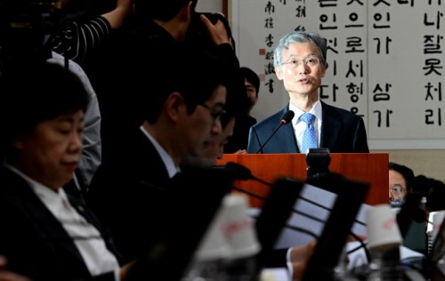 Cho reappeared at the session at 11:40 p.m. to deliver a final statement. “I regret that there appears to be public mistrust regarding the speed and circumstances of the ruling,” he said. “Although I wish to dispel these doubts, the Constitution and the Court Organization Act prohibit me from disclosing details of deliberations or rulings made by the full bench.”