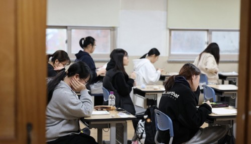 | Students at Inhwa Girls’ High School in Michuhol District, Incheon, work through last-minute questions on the morning of Nov. 13 as the 2026 College Scholastic Ability Test (CSAT) gets underway. / Source: Yonhap News |