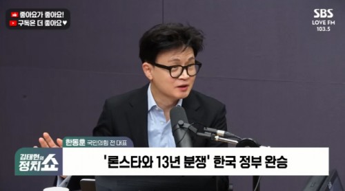 | Former People Power Party leader Han Dong-hoon speaks during an appearance on SBS Radio’s “Kim Tae-hyun’s Political Show” on November 19. / Screenshot from Han Dong-hoon’s YouTube channel |
