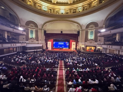 | Students fill the main auditorium at Cairo University on November 20 for President Lee Jae-myung’s speech titled “Shaping a Bright Future Together.” / Source: Yonhap News |