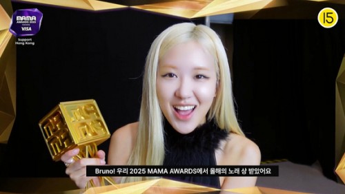 | Rosé accepts the Song of the Year award for “APT.” via video message during the 2025 MAMA Awards on November 28. / Source: Mnet |