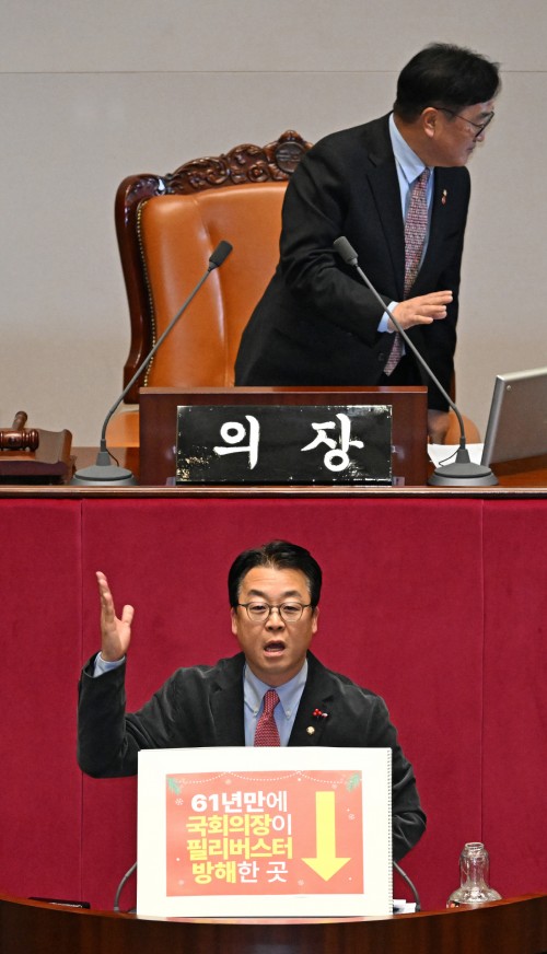 The session opened with votes on the Franchise Transactions Act amendment—whose previous filibuster ended on December 9—and the extension of the pension reform committee’s mandate. Both passed with a simple majority. However, the People Power Party launched a filibuster on the next item, the Criminal Procedure Act amendment, effectively halting further legislative progress.