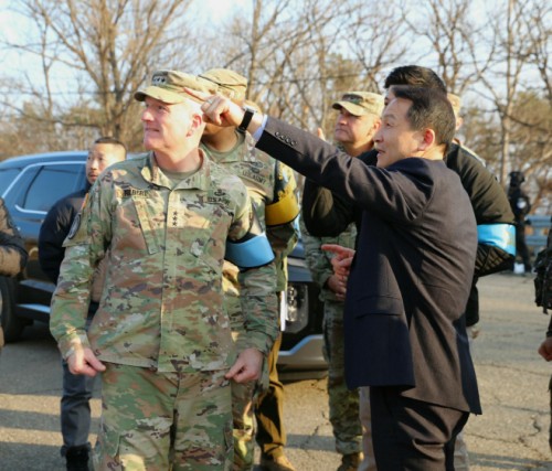 | Kim Hyun-jong, first deputy director of the National Security Office (right), visits the Demilitarized Zone after the United Nations Command granted him access on December 17. / Source: United Nations Command Facebook |