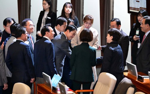 Jang spoke continuously for 24 hours—from 11:40 a.m. on Dec. 22 to 11:40 a.m. on Dec. 23—surpassing the previous record of 17 hours and 12 minutes. Standing through the night with only water, his eyes visibly bloodshot, Jang pressed on until stepping down without a closing statement. Lawmakers from his party rose in applause as he exited the chamber, exchanging handshakes along the way.