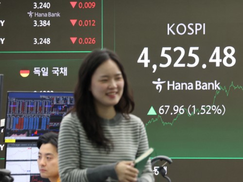According to the Korea Exchange, the KOSPI finished the session up 1.52 percent at 4,525.48, after moving between an intraday low of 4,395.00 and a high of 4,525.48.