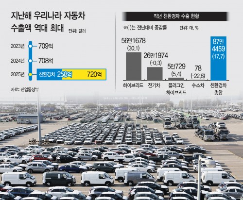 South Korea’s automobile exports hit a new all-time high last year, powered by strong growth in eco-friendly vehicles, even as U.S. tariffs reshaped global trade flows.