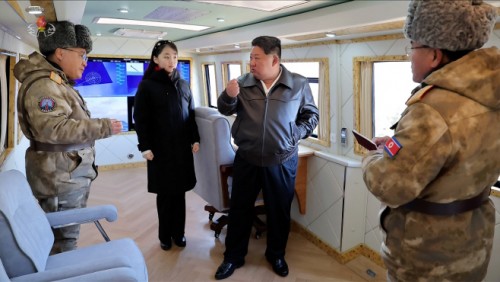 Kim, who was accompanied by his daughter Ju-ae, said building “the most reliable offensive capabilities” and implementing a deterrence strategy based on them is an “unchanging line” of the ruling party’s national defense policy.