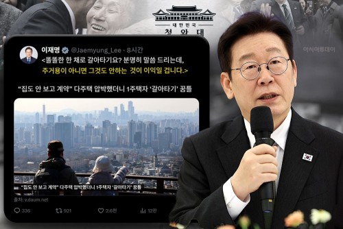 Lee Jae-myung on Wednesday issued a warning to the real estate market over so-called “one-prime-home switching,” saying, “Let me be clear—if it is not for residential use, it would be in your interest not to do it.”