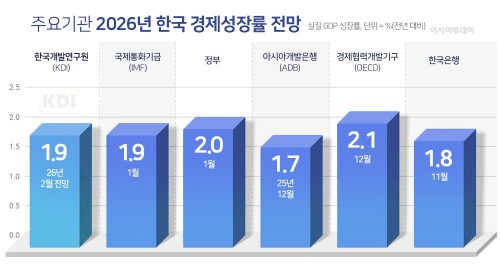 In its revised February 2026 economic outlook released on Feb. 11, KDI upgraded the projection by 0.1 percentage point from the 1.8 percent forecast issued in November last year. The new estimate is slightly below the government’s 2.0 percent forecast but higher than the Bank of Korea’s 1.8 percent projection.