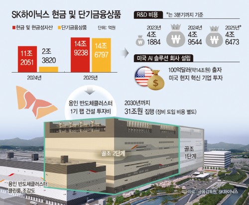 SK hynix has secured some 30 trillion won ($22 billion) in cash and short-term financial instruments, reinforcing its financial firepower as it accelerates investments in artificial intelligence semiconductors, facilities and research and development.