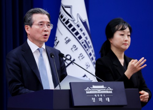 Kim Yong-bum, the presidential chief of policy, made the remarks during a press briefing at the Chunchoogwan press center after an emergency economic inspection meeting on the Middle East situation.