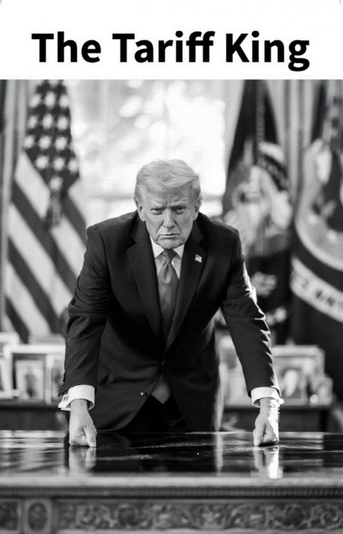 | U.S. President Donald Trump poses in the Oval Office in a photo posted on Truth Social with the phrase “Tariff King” written on it. /Trump Truth Social |