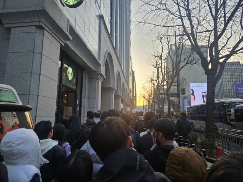 Large numbers of spectators gathered especially around Jonggak Station, the closest station to Gwanghwamun. Because concertgoers had to pass through metal detectors one by one, long lines formed along the sidewalks, with many waiting to enter the secured zone near the venue.