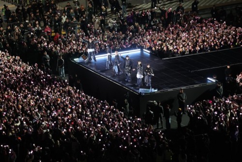 Fans from across generations and countries, including the global fandom ARMY, filled the square to celebrate the group’s return. Even before the performance began, the area was awash in purple light from official light sticks, creating a festival-like atmosphere.