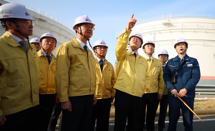 Later in the day, Lee visited an oil storage facility operated by the Korea National Oil Corporation in Seosan, where he reviewed oil reserves and supply conditions and met with industry leaders.