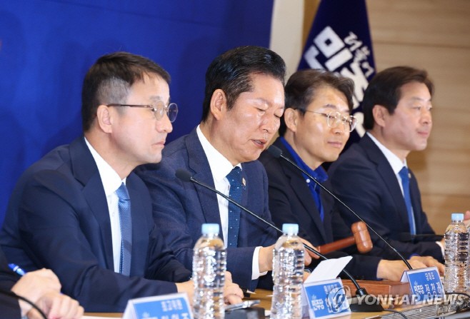 | Democratic Party leader Jung Cheong-rae speaks at a Supreme Council meeting at the National Assembly in Seoul on March 30. / Yonhap News |