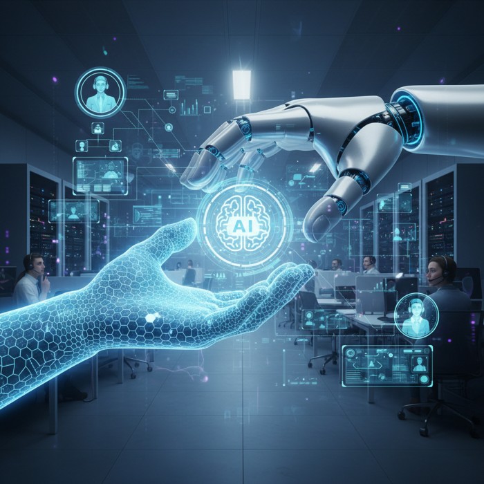 | Concept image of a customer center where human and AI roles intersect. / Image generated by AI |
