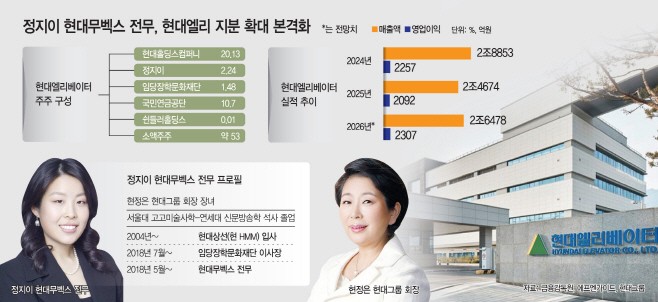 Chung Ji-yi, Executive Vice President of Hyundai Movex and eldest daughter of Hyun Jeong-eun, Chairwoman of Hyundai Group, is rapidly increasing her stake in Hyundai Elevator, a move seen as part of a broader strategy to secure control over a key affiliate rather than a simple financial investment.