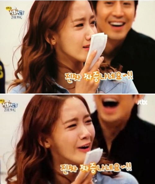 Yoona belatedly realizing it was a prank after suffering an embarrassing situation, shouted, "This is annoying" and poured out tears.