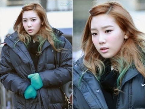 Recently, some pictures of Taeyeon were uploaded on an online community board with the title "Taeyeon in green on her way to work".