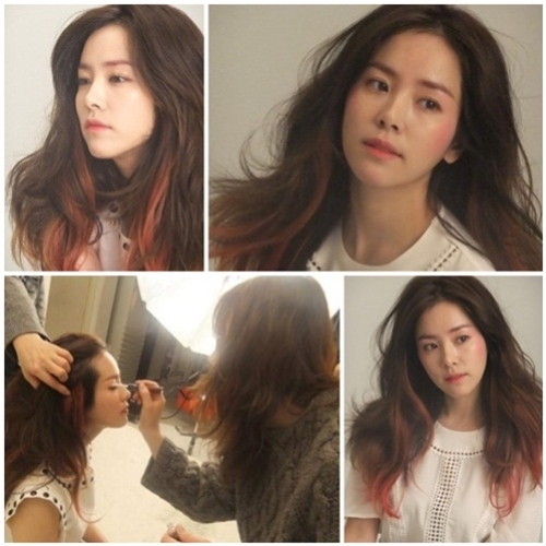 In the picture is Han Ji-min in the midst of shooting a pictorial. Han is showing off her flawless and clear skin at any angle.
