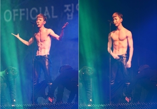 B.A.P's Bang Yong Guk revealed his abs during the concert, as he previously promised to his fans to show off his abs if they receive the Rookie of the Year Prize.