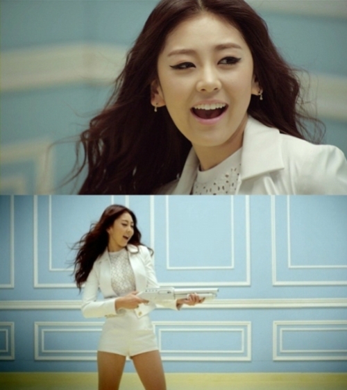 In the video, Kwon Risae is wearing a white jacket and high waisted shorts. Kwon is showing off her slender body with her smoky eye makeup.