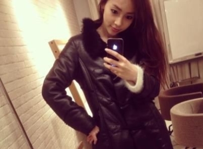 In the picture, Ayumi is wearing a black long leather jacket while taking the photo of her reflection in the mirror. She is showing off her ever-growing beauty with sharp jaw line.