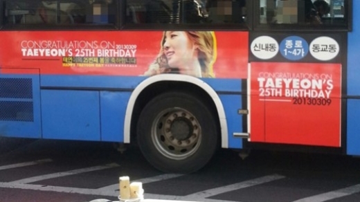 Girls' Generation (SNSD) Taeyeon's fans celebrated Taeyeon's birthday through bus advertisment.