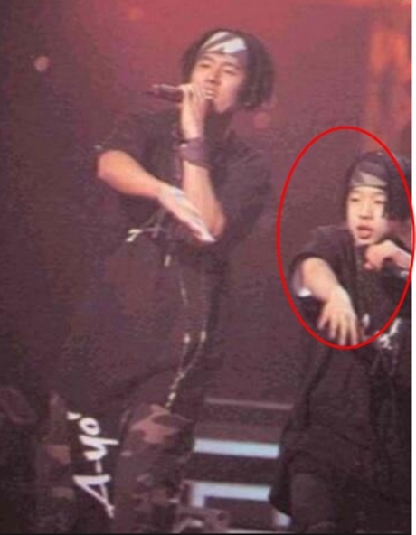 In the picture, Taeyang is seen as a little child rapping on the stage with Sean during Jinusean's 'A-Yo' performance.