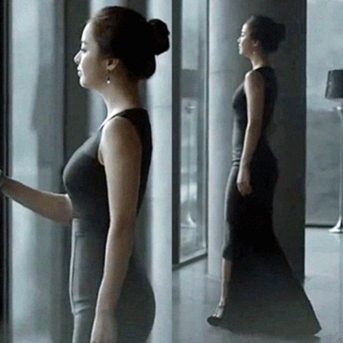 The actress is showing off her sexy figure in a long tight black dress. Kim Tae-Hee particularly impressed her fans with her surprisingly glamorous body from the side while she was looking at the window.