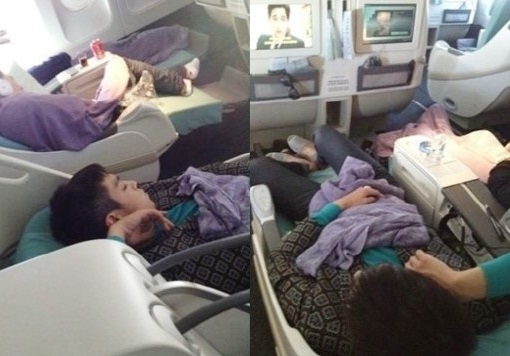 A picture of Big Bang member T.O.P asleep on the plane has been revealed.