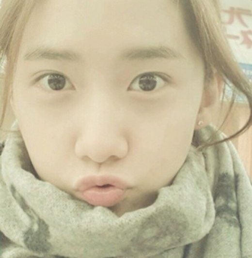 In the picture, Yoona is wearing a muffler and showing a cute expression.