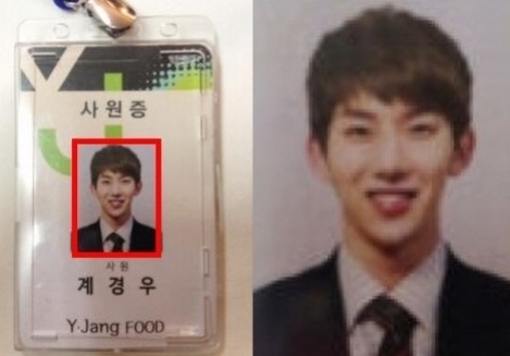 2AM member Jo Kwon's photo on an employee ID card is drawing attention.