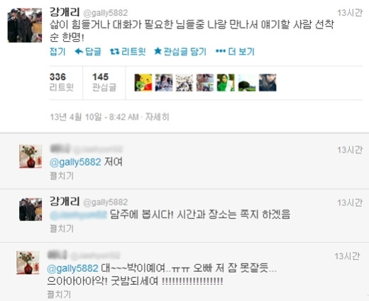 On April 11, Gary tweeted, "Anyone who's having a hard time in life or just want to talk with me in person? First come, first served basis!"