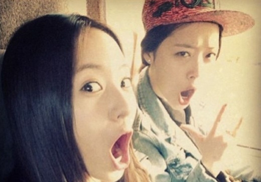 Girl group f(x)'s members Krystal and Sulli revealed a funny self camera picture.
