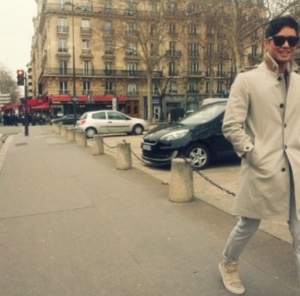 In the picture, the actor is seen wearing an ivory color trench coat, looking stylish and handsome. Also, he is wearing black sunglasses matched with a pair of studded sneakers, attracting attention as a fashionista in Paris.