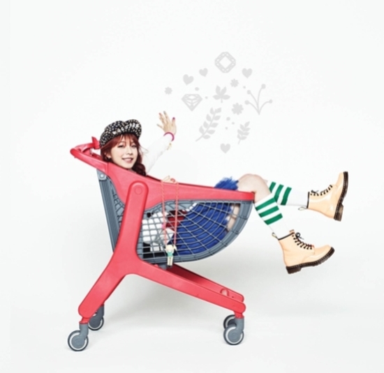 Singer Juniel revealed the second jacket photo before making her comeback. In the picture revealed on April 19, Juniel has turned into a fun, funky girl wearing bright colorful outfit which matches with the concept for her new title track 'Pretty Boy'. She is seen taking a ride on a shopping cart while making a cute pose. Juniel will be holding a special event titled 'Pretty Boy Party' on April 25 to celebrate her comeback. Anyone can apply for this event on FNC Entertainment's website. Meanwhile, Juniel is drawing her fans' attention since the new album will be showing her 180 degree transformation of image and music style.