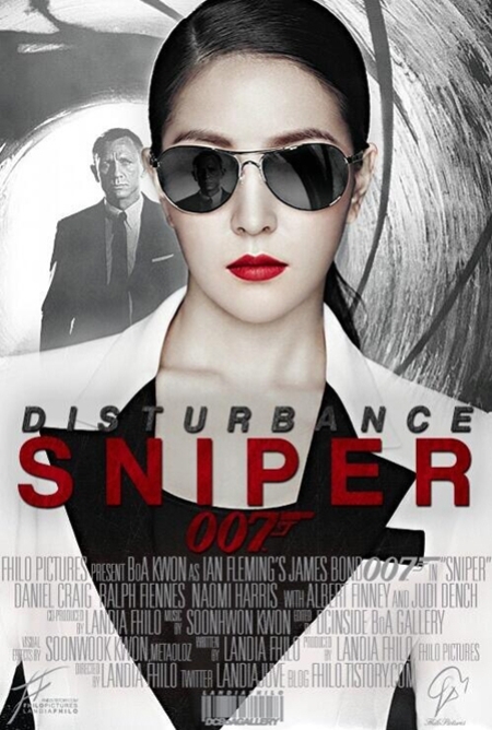 The fake poster shows BoA looking like a 'Bond girl' of the movie '007'. One of her fan has made a fake poster for BoA.