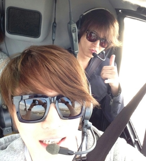 He also wrote, "This picture is taken in a helicopter! And this is my awesome friend who came to Korea to see me!" along with a picture with Yamashita Tomohisa, a Japanese top star.
