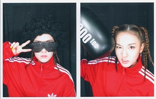 In the photos, Sandara Park is wearing the same red tracksuit as famous American rapper Snoop Dogg. She is wearing similar hairstyle with shades and braids.