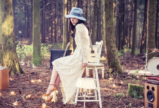 In the picture, the singer is flaunting her innocent charms in a white dress in a forest. Compared to her previous images, she looked classic and natural.