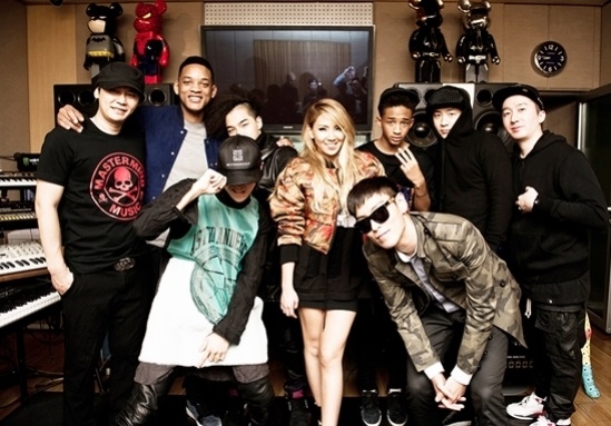 YG posted a picture on its official blog showing Will Smith and Jaden along with YG Entertainment CEO Yang Hyun-Suk, and YG label singers and producers such as Teddy and G-Dragon.