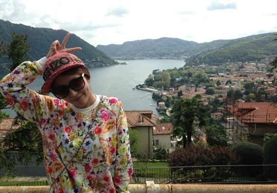In the picture, singer BoA is seen wearing a colorful flowery t-shirt matched with a pink cap and sunglasses. It appears that the singer is enjoying a break abroad.