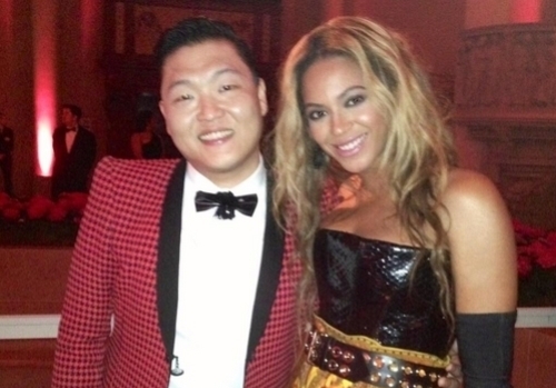 On May 7, Psy uploaded a picture on his Twitter with a message, "I finally met Beyonce and talked about 'Single Ladies'."