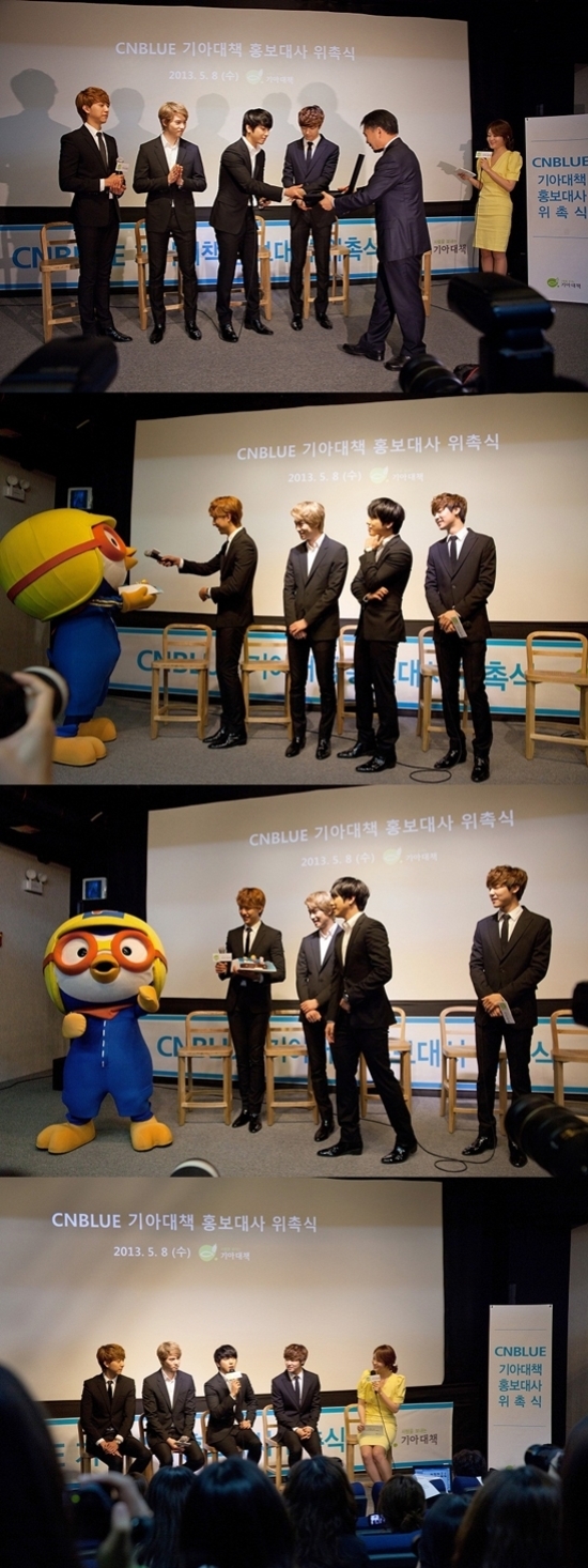 On May 8, the members of CNBLUE attended the appointment ceremony held in Seoul and were given a plaque appointing them the honorary ambassadors for the organization.