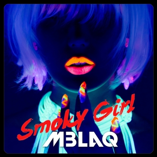 'Smoky Girl' is a title track of MBLAQ's fifth mini album 'SEXY BEAT'. The main image for 'Smoky Girl' shows a short haired girl with neon colored lips and nails, evoking a dreamy and sexy feel.
