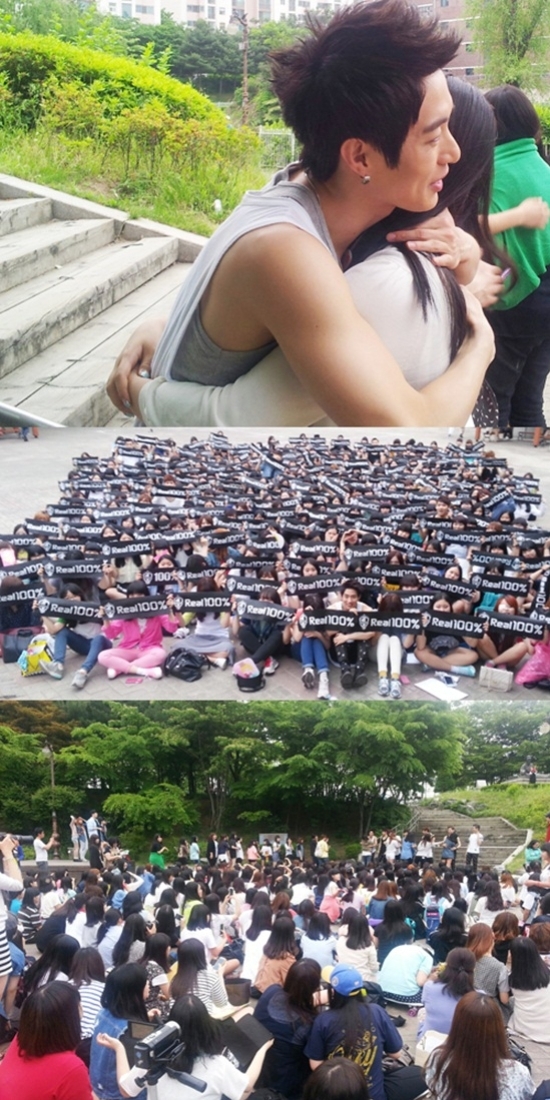 On May 26, 100% held a surprise free hug event for their fans after performing at SBS' 'The Music Trend' (or 'Inkigayo').